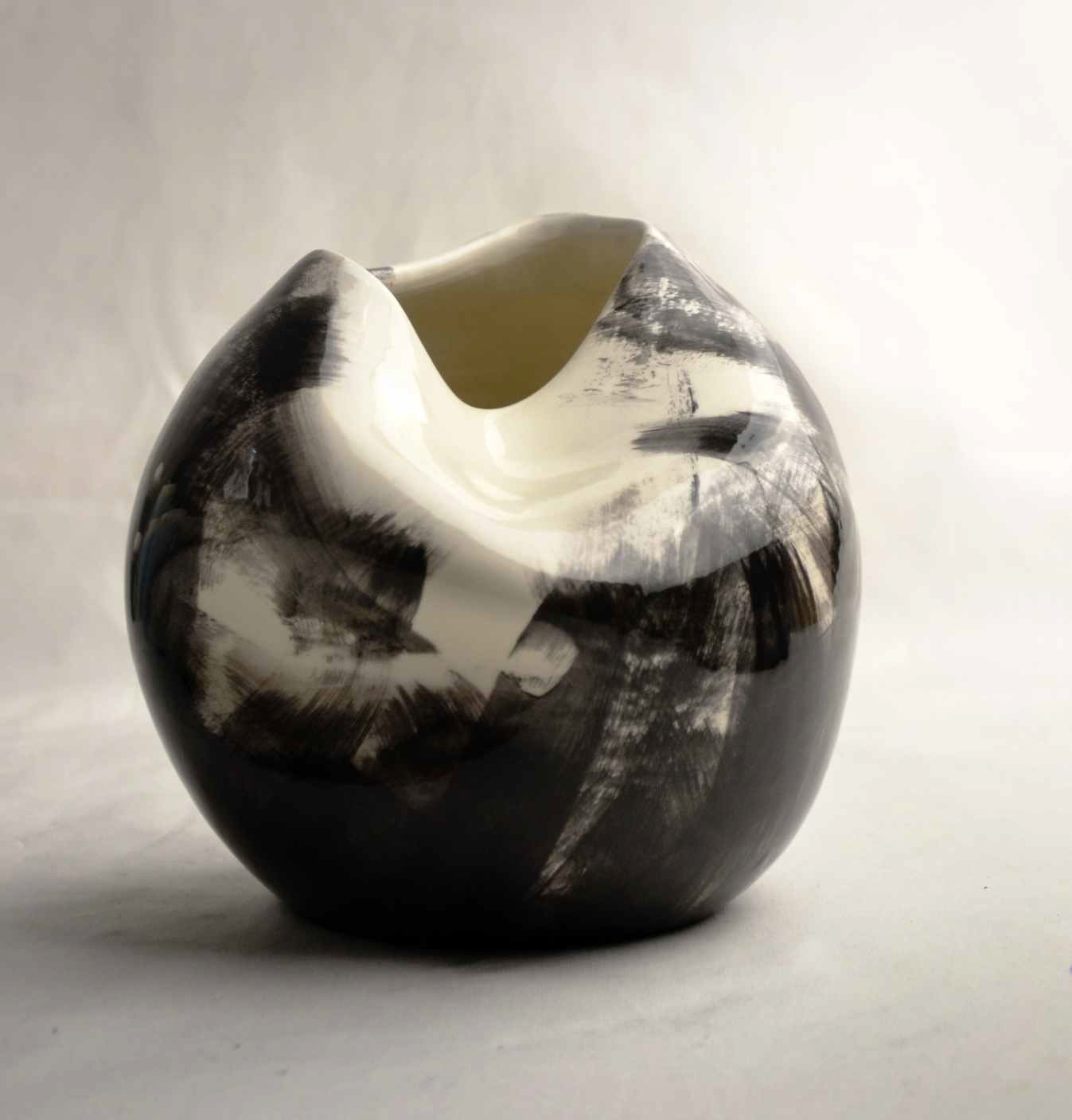 handmade ceramic vase, with sharp creases painted by hand
